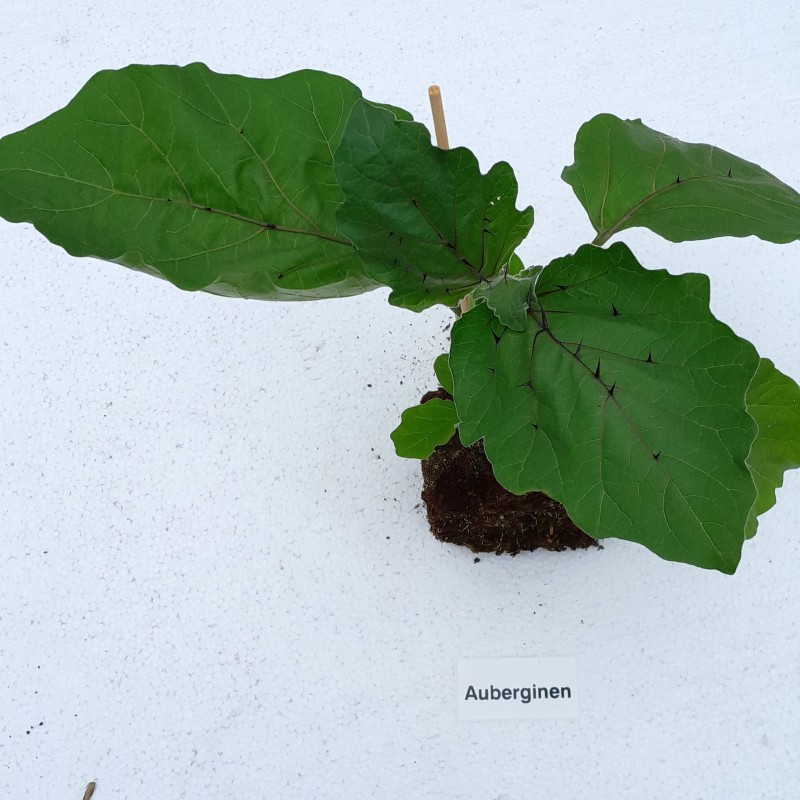 Die Aubergine hat eine große längliche violette glatte Frucht.